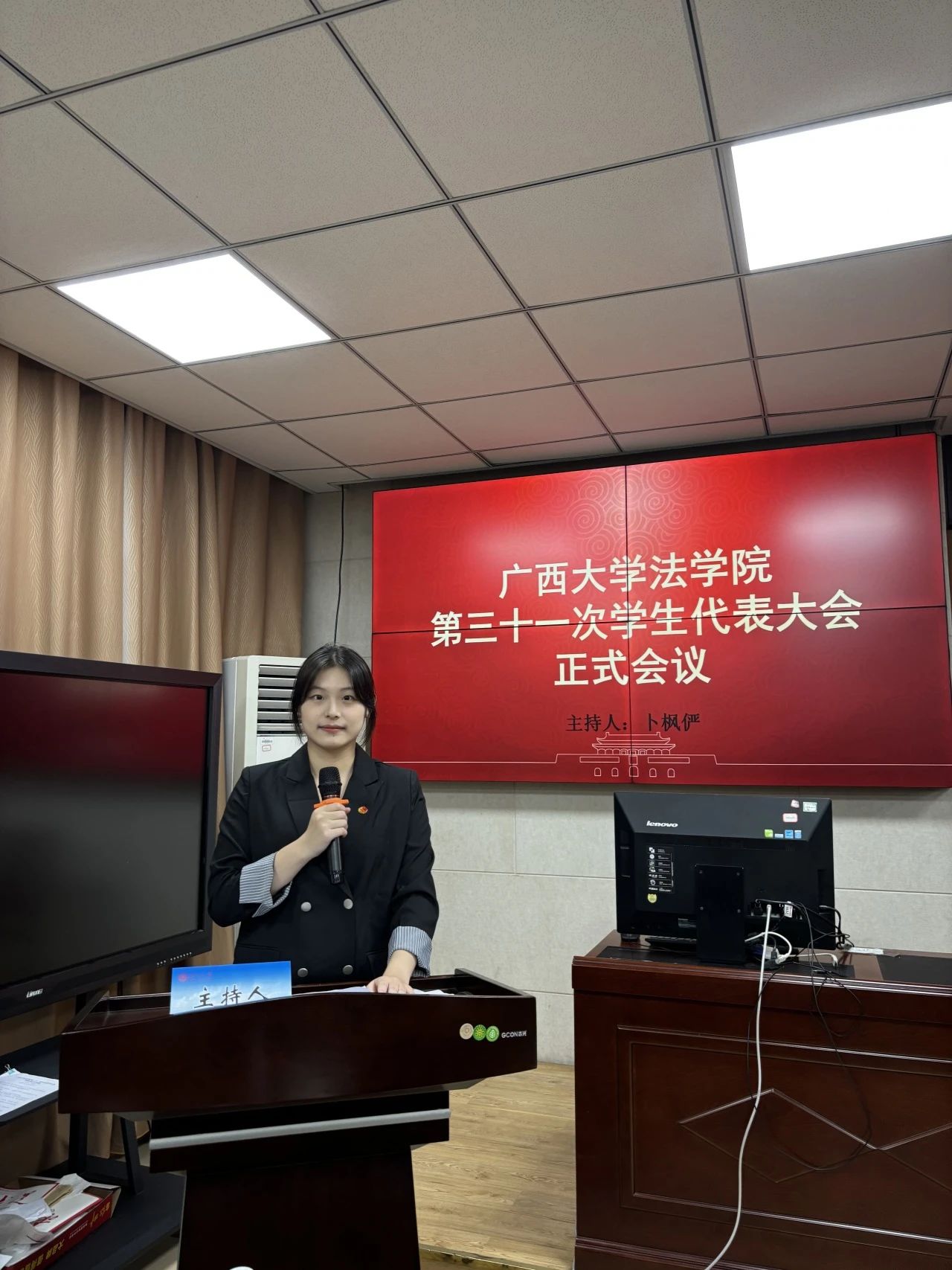 伴随着庄严恢弘的国歌声,本次学生代表大会正式开始,大会进入第一阶段,校学生会主席团代表周姝彤发言。周姝彤代表校学生会,对伟德国际victor1946学生代表大会的召开表示热烈祝贺,充分肯定了过去一年伟德国际victor1946学生会的工作,希望新一届学生组织能继承优良工作作风,忠诚履职尽责。