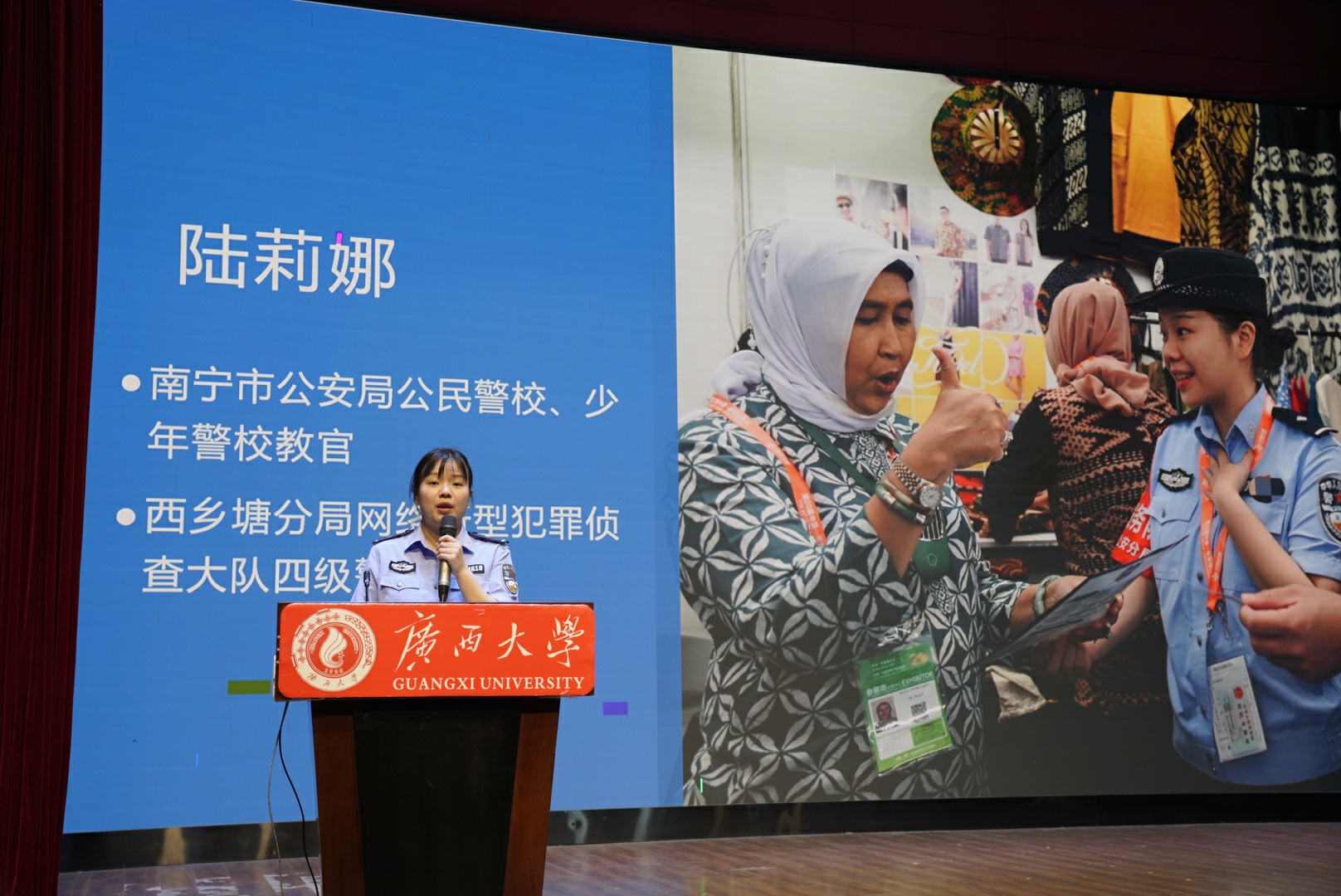 图/南宁市公安局西乡塘分局网侦大队四级警长陆莉娜发言