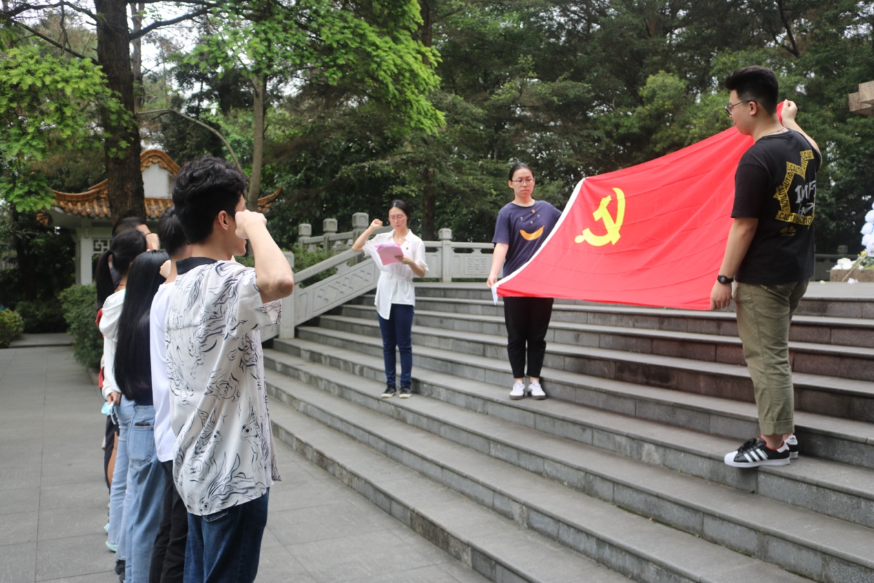 腥风血雨浴精神,承前矢志更芬芳。在陈焜如老师的带领下,伟德国际victor1946青年在烈士纪念碑下重温入团誓词、党员同志重温入党誓词,声声掷地,字字铿锵。在秀野山林中,同学们的头脑明澈且宁静,内心坚毅而澎湃。