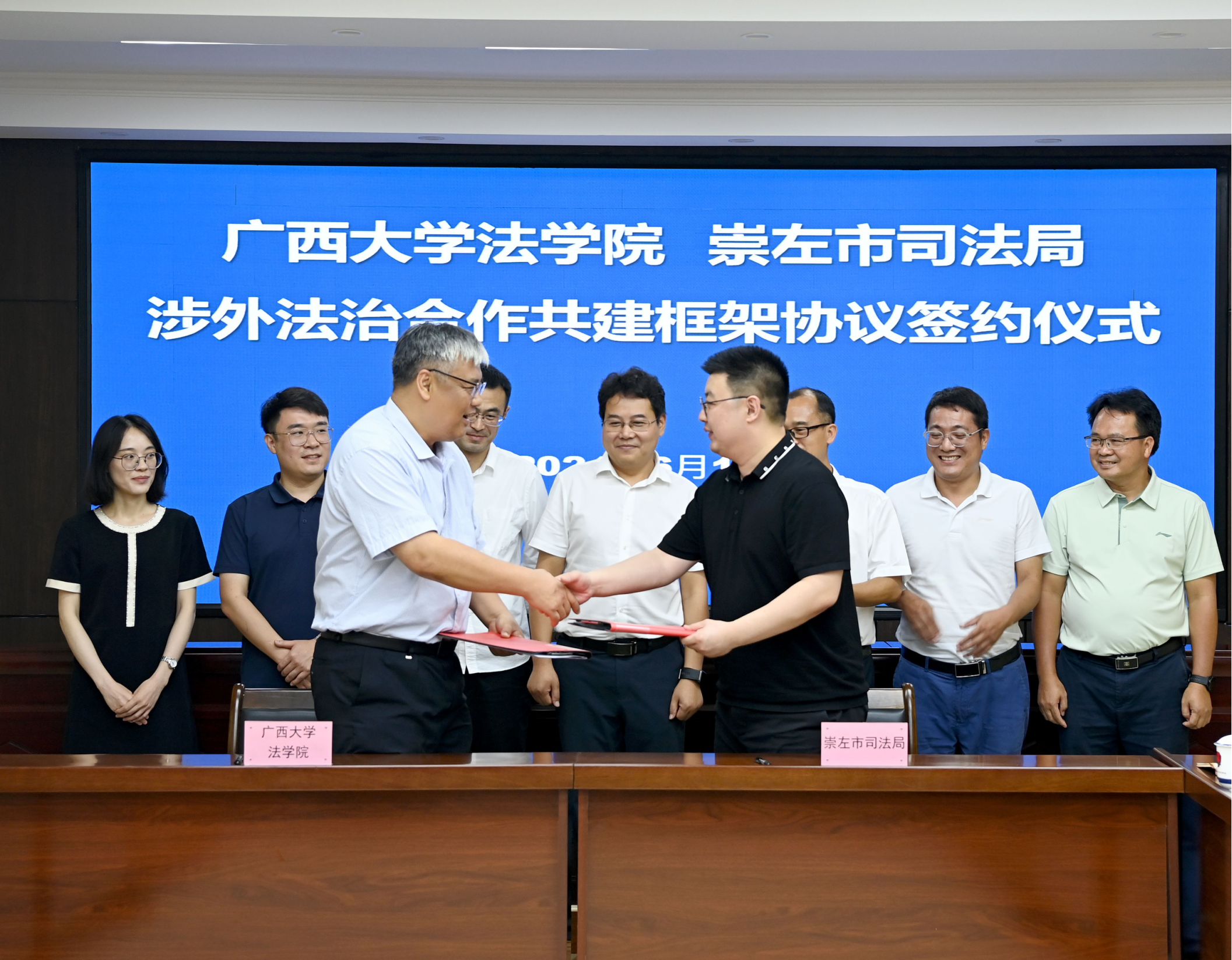 With the construction of China - ASEAN Free Trade Area and the Regional Comprehensive Economic Partnership Agreement (RCEP) in full force, Chongzuo City, as China's openness to ASEAN as a bridgehead for co-operation, to speed up the ASEAN-related legal talent team construction is also more and more urgent. The signing of this contract is also a concrete action to implement the cooperation between Guangxi University and Chongzuo City, and the renewal of the new round of cooperation agreement between Guangxi University and Chongzuo Municipal People's Government in 2022 makes it clear that the two sides of the university and the local government will make joint efforts to strengthen the cultivation of foreign-related legal talents, and to provide high-quality legal support services for the country's ASEAN-oriented economic and trade co-operation. Guangxi University School of Law will take this opportunity to continue to focus on foreign-related law, economic law and other areas of teaching and research construction, and promote the law discipline of Guangxi University to serve the ‘Belt and Road’ high-quality development and the rule of law in Guangxi to further enhance the construction capacity.