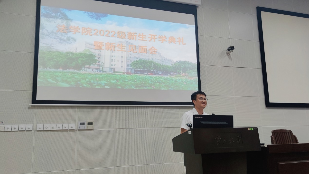 陈聪同学作新生代表发言,查紫宴同学代表老生分享了学习感悟,管华老师作为教师代表从“大学是什么”“法学是什么”及“如何好好学习”给新生建议。