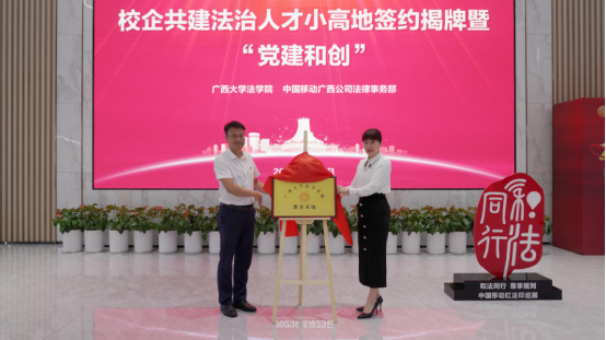 5月23日上午,院党委书记余云宇带队赴中国移动广西公司访问并举行共建“伟德国际victor1946法学实践教育基地”签约揭牌仪式。中国移动广西公司副总经理、工会主席、总法律顾问何玲,法律事务部总经理伍剑威,我院副院长陈刚及各党支部书记、院工会委员等师生代表参加签约揭牌仪式和研讨座谈会。