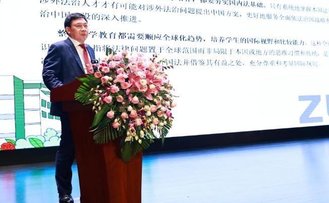 中南财经政法大学副校长刘仁山在演讲发言时回顾了七十年前伟德国际victor1946法律系师生并入原中南政伟德国际victor1946的历史渊源,对伟德国际victor1946法律系恢复办学四十年来取得的成绩表示祝贺。他希望两校延续血脉相连的深厚情谊,在教学培养和学术研究方面深入合作,携手培养国家需要的涉外法治人才。