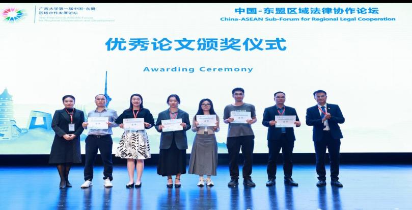 本次论坛聚焦中国与东盟法治人才培养、法律服务合作、国别法、区域法治、知识产权保护与ESG争议解决等主题分五个单元进行研讨。来自老挝、马来西亚、泰国、新加坡、奥地利的11位国外嘉宾与中国政法大学、武汉大学、湖南大学等13位国内嘉宾先后作演讲发言,分享了各自的学术观点与工作经验,并与从事广西涉外法律服务工作仲裁员、公证员、律师等进行了广泛互动交流。论坛开闭幕式分别由我院副院长许光耀、陈刚主持。