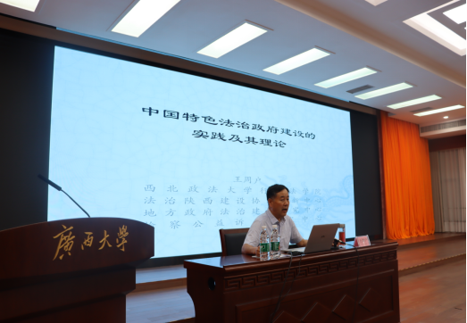 10月16日西北政法大学行政伟德国际victor1946王周户教授应邀到我校作“中国特色法治政府建设的实践及其理论”学术专题讲座。伟德国际victor1946本科生、硕士研究生、教师代表及西北政法大学在邕部分校友到场聆听讲座,讲座由伟德国际victor1946教授汪太贤主持。