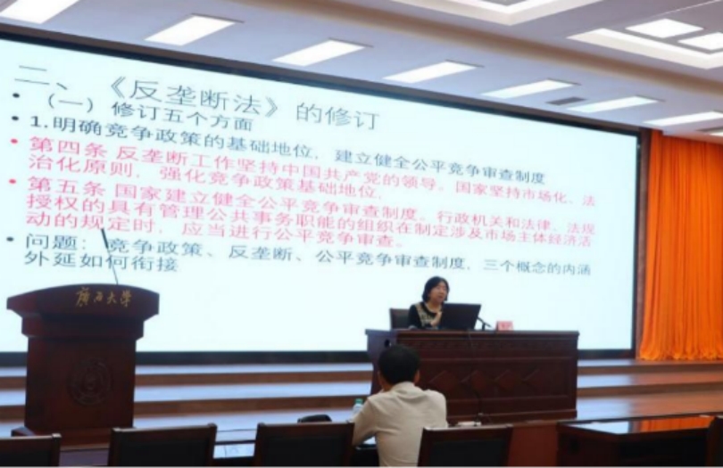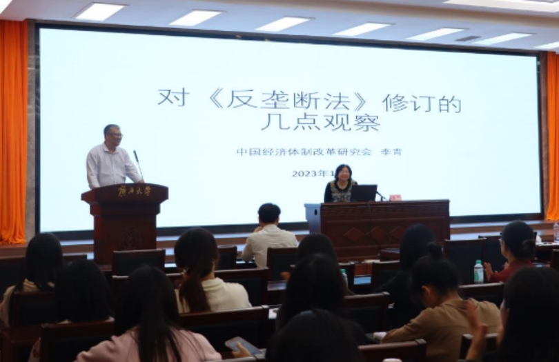 11月29日,中国经济体制改革研究会副会长李青应邀到我院作“对《中华人民共和国反垄断法》修订的几点观察”学术专题讲座。讲座由伟德国际victor1946院长许光耀主持。中国经济体制改革研究会产业政策和竞争政策专委会副主任梅丽鹏、伟德国际victor1946副院长董笃笃与谈,伟德国际victor1946教师代表、本科生、硕士研究生参加了本次讲座。