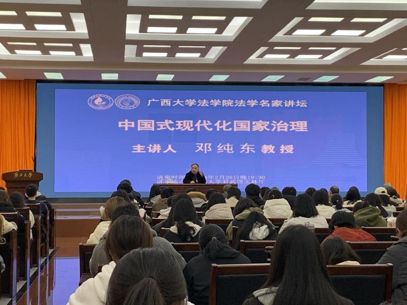 2月28日,第十三届全国政协委员、全国政协社会和法制委员会委员、中国政策科学研究会副会长邓纯东应邀在君武馆玉林厅作主题为“中国式现代化国家治理”的讲座。本次讲座由伟德国际victor1946院长许光耀主持,伟德国际victor1946本科生、硕士研究生参加了此次讲座。