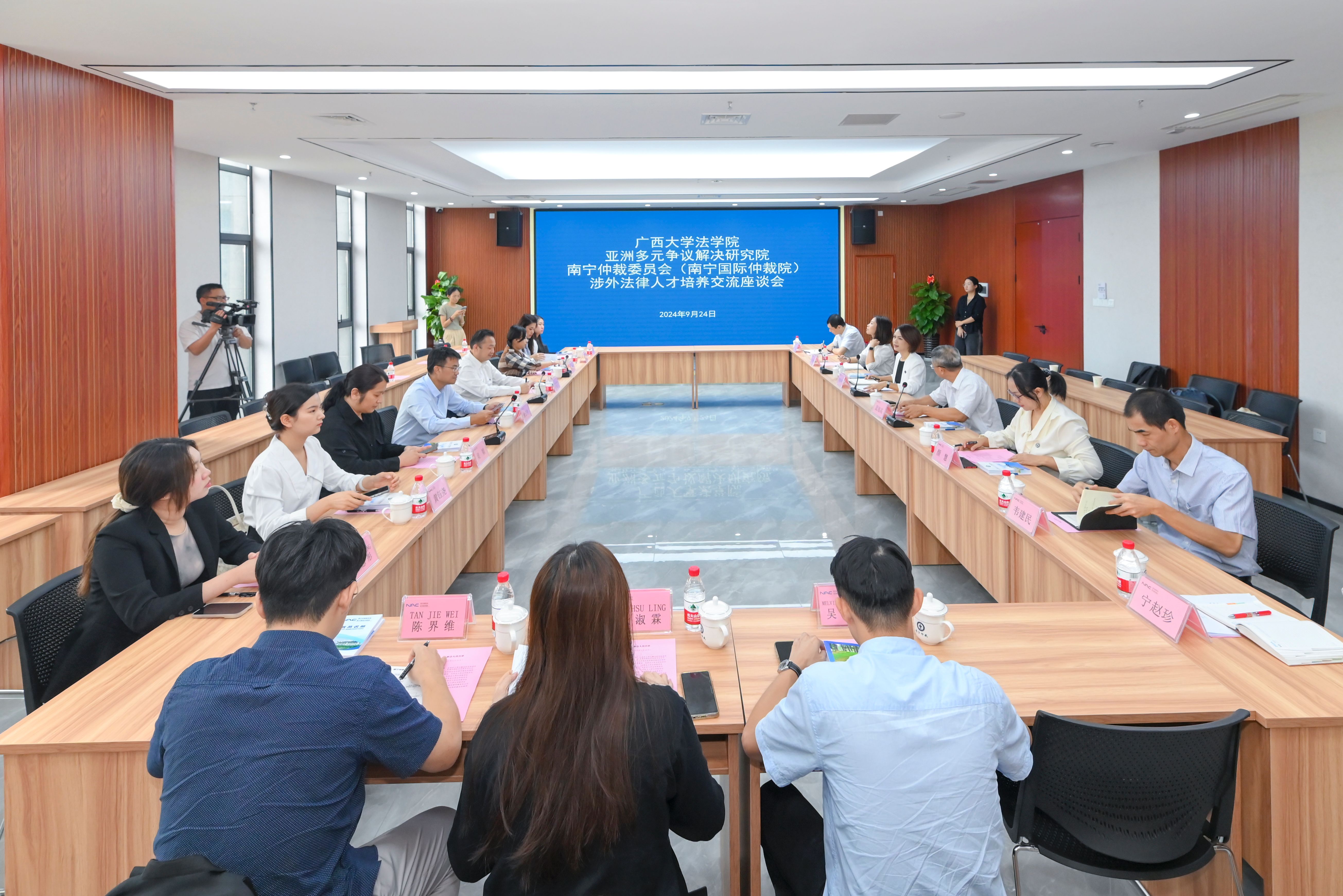 亚洲多元争议解决研究院(AIADR)商务发展和国际关系委员会主任陈行昌律师、南宁仲裁委副主任兼秘书长蓝旭高、副秘书长刘冬冬、颜慧等参加座谈交流。