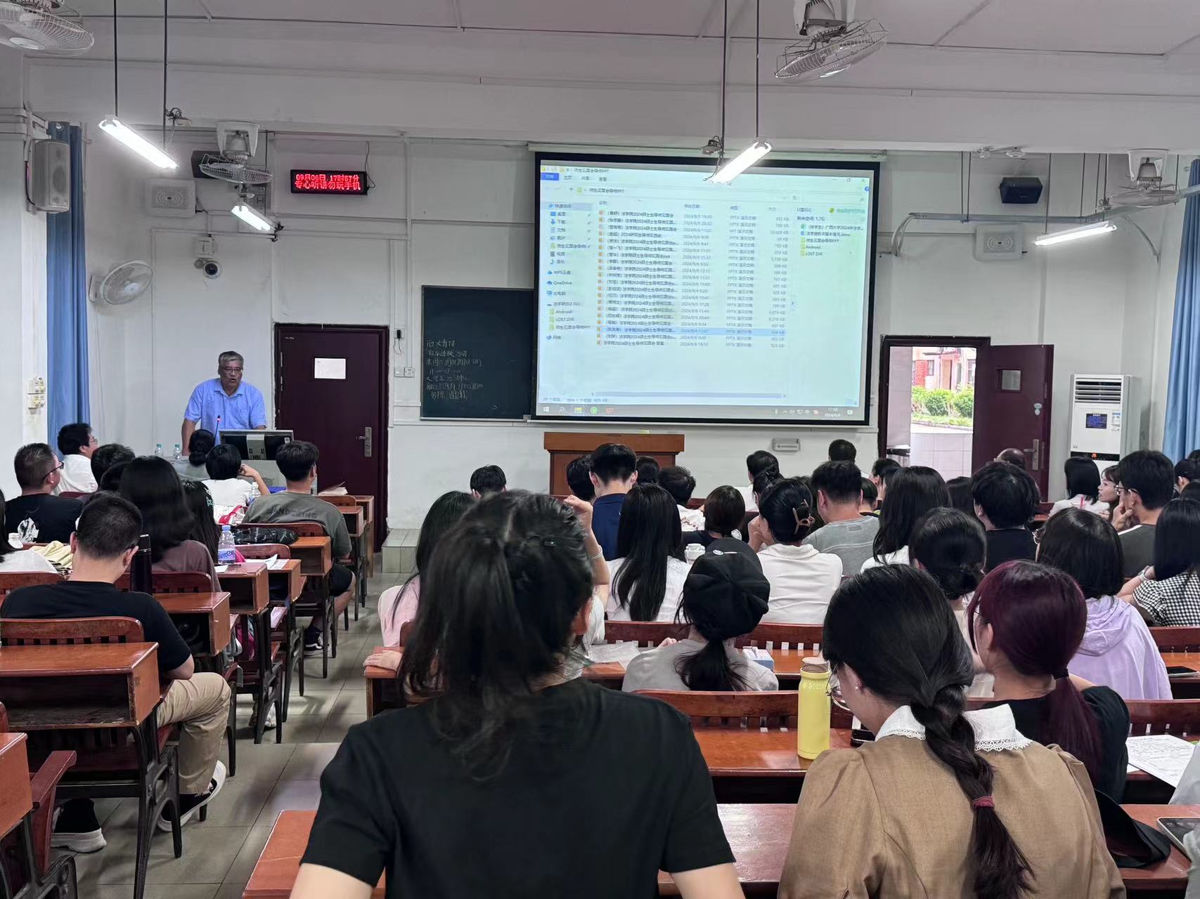 金秋送爽,新学期的生活也逐渐步入正轨。为使研究生新同学进一步了解学院的各位导师,促进师生双选工作的顺利推进,伟德国际victor1946于9月6日下午17:00在第二教学楼101教室召开2024年硕士研究生师生见面会。此次见面会由熊超副院长主持,到会导师分别上台简要介绍了自己的研究方向以及对招收学生的要求。最后,院长许光耀教授作了总结讲话,并对研一新生们的到来表达了期许和欢迎。因时间冲突,部分导师未能到达现场,但也都准备了个人简介PPT,由熊超副院长代为介绍。
