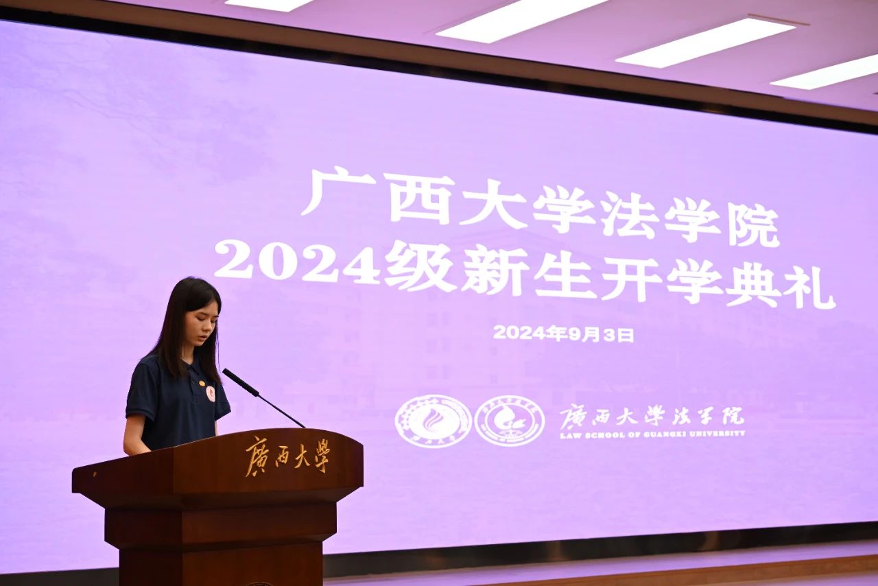 2024级本科生李璐潘作为本科新生代表发言。她表示,自己在梦想的指引下一路披荆斩棘来到了伟德国际victor1946,今后仍将不忘初心,积极进取,努力践行“诚恳朴诚”的校风,怀揣探索的勇气和求知的渴望,肩扛守护正义的重担和追求真理的使命。她将以法治之名,担负起对社会的责任,誓将为构建法治社会、捍卫法律尊严而矢志不渝。