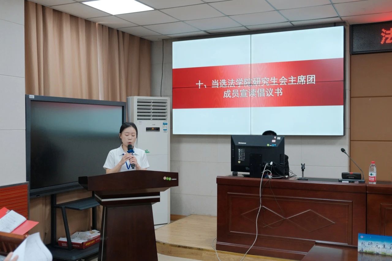 伴随着庄严恢弘的国歌声,本次研究生代表大会正式开始。大会进入第一阶段,院团委书记申孟鑫主持会议。