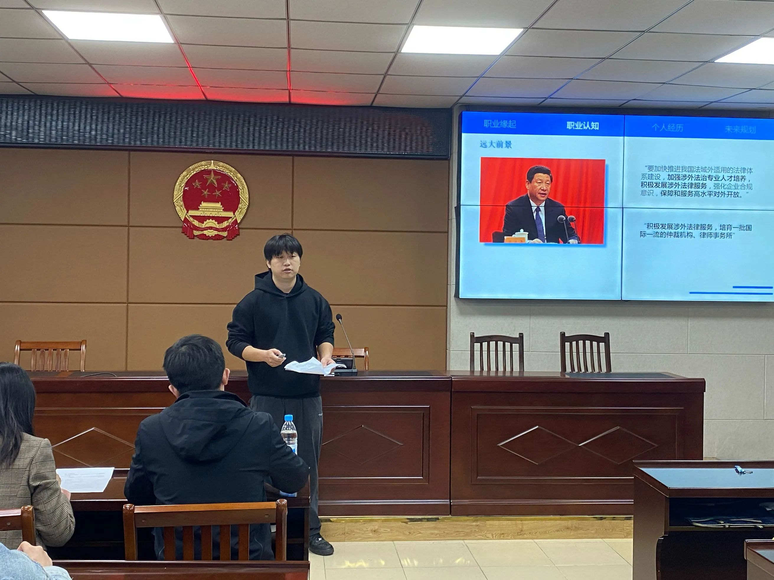本次大赛分为研究生组和本科生组两个组别依次进行比赛。首先登场的是研究生组的同学们。一位位选手充满激情地走上讲台,通过精心制作的 PPT,详细介绍了自己的职业生涯规划。他们的规划目标明确、路径清晰,且对实施策略与风险评估等方面都进行了深入思考和详细阐述。评委老师们认真聆听,并在每位选手展示结束后提出专业且具有建设性的问题,与选手们进行了深度交流和探讨。