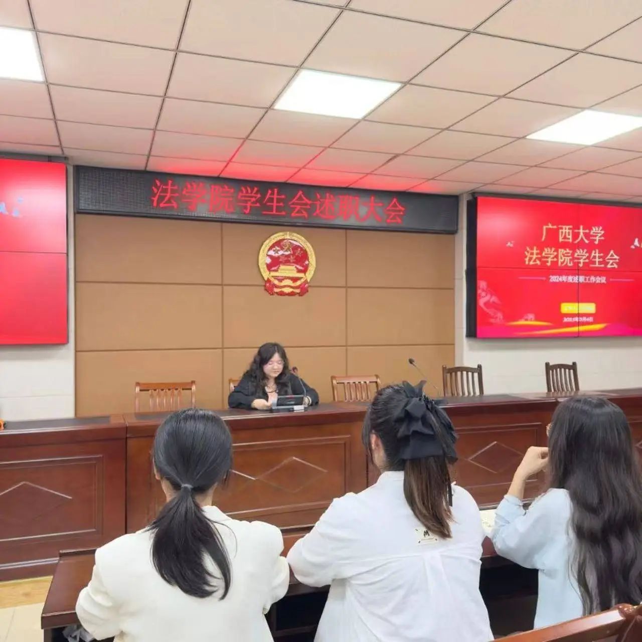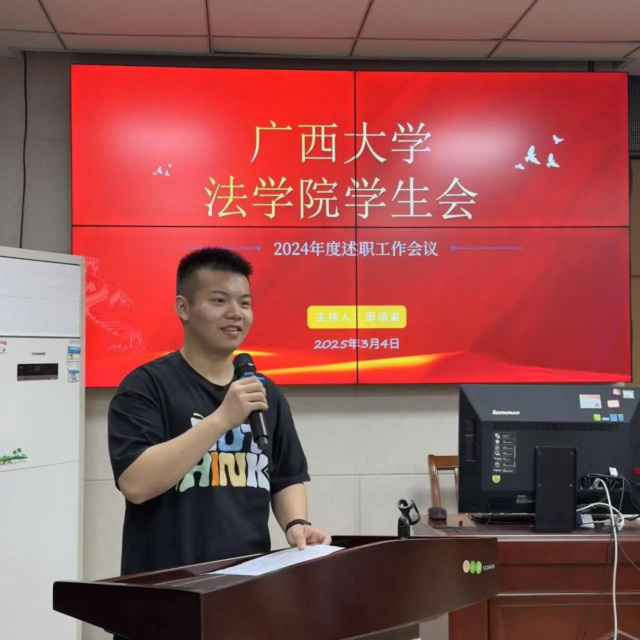 随后,韦棕文代表学院学生会做述职报告,从工作回顾与总结、工作存在的不足、未来工作展望三个方面进行了详细汇报,表示在未来的工作中将进一步增强学生会各部门之间的协同合作,确保各项工作能够更加顺畅地开展。