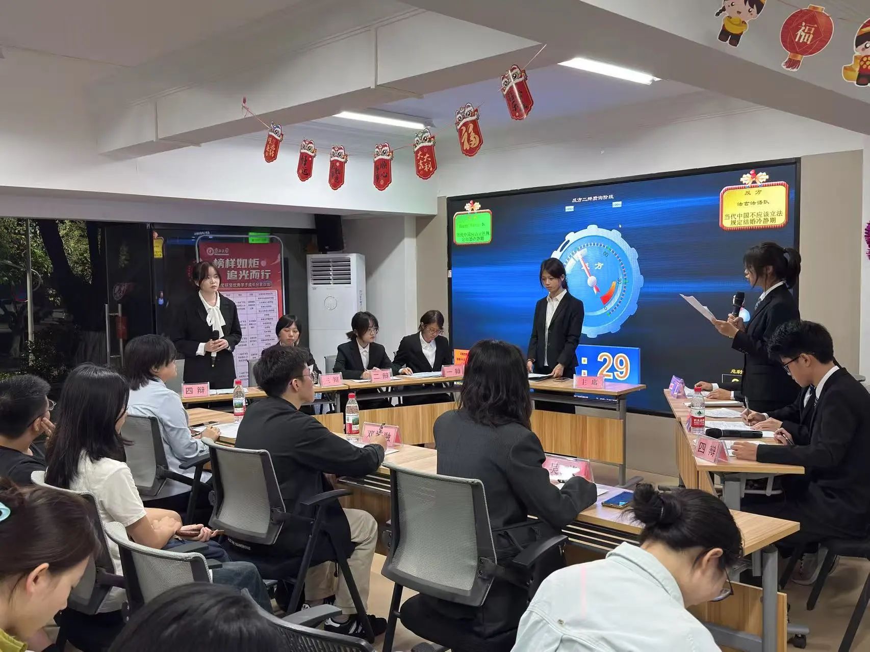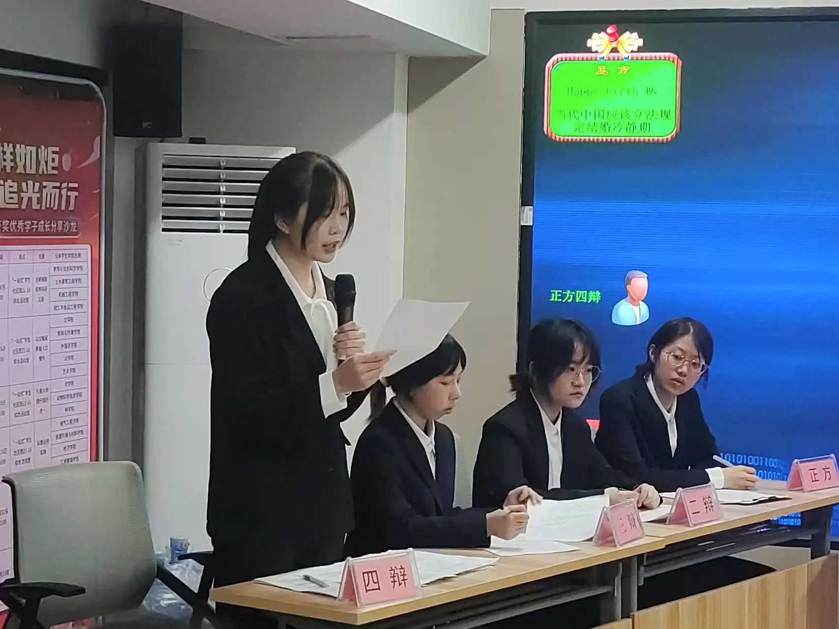 为了提升学生思辨能力、深化法治实践认知,2025年4月12日晚19时30分,伟德国际victor1946辩论赛决赛于一站式学生社区西 21-16 号教室举行。本次决赛的辩题是“当今中国是否应该立法规定结婚冷静期”。经过前期的激烈角逐,“法言法语队”与“Happy birth队”脱颖而出,晋级决赛。