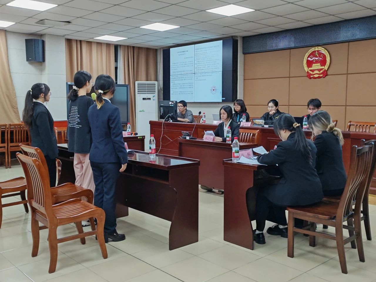 本次模拟法庭以“刘佳涉嫌盗窃罪”一案为背景。公诉方“三人一队”与被告“乘风破浪队”围绕“犯罪构成要件”“罪名认定”及“量刑情节”展开激烈辩论。公诉方指控被告人刘佳以非法占有为目的,秘密绑定他人银行卡并盗刷2万元,构成盗窃罪;被告方则从“微信支付是否属于信用卡诈骗”“退赔谅解情节对量刑的影响”等角度进行辩护。双方举证质证条理清晰,法庭辩论针锋相对,完整还原了刑事案件庭审的规范流程。