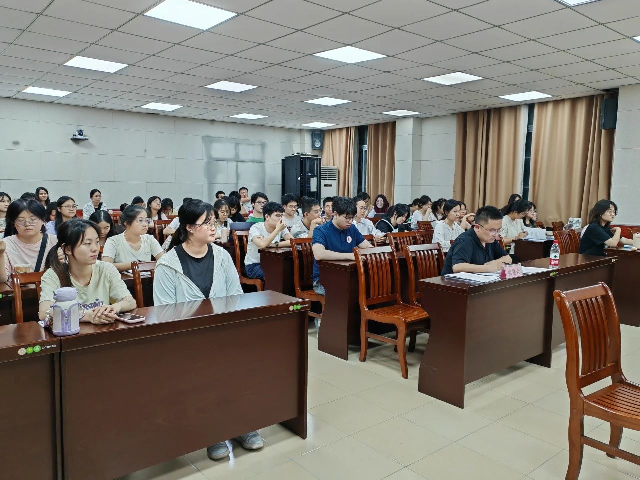 庭审结束后,评委曲显合老师对选手表现进行专业点评。他高度肯定选手们对庭审程序的严谨把控、法律文书的规范撰写以及临场应变能力,同时建议加强质证环节的逻辑衔接与法律术语的精准运用。现场观众踊跃提问,就“扣押被害人的财产正确与否”等问题与选手展开互动,进一步深化对法律实务的理解。