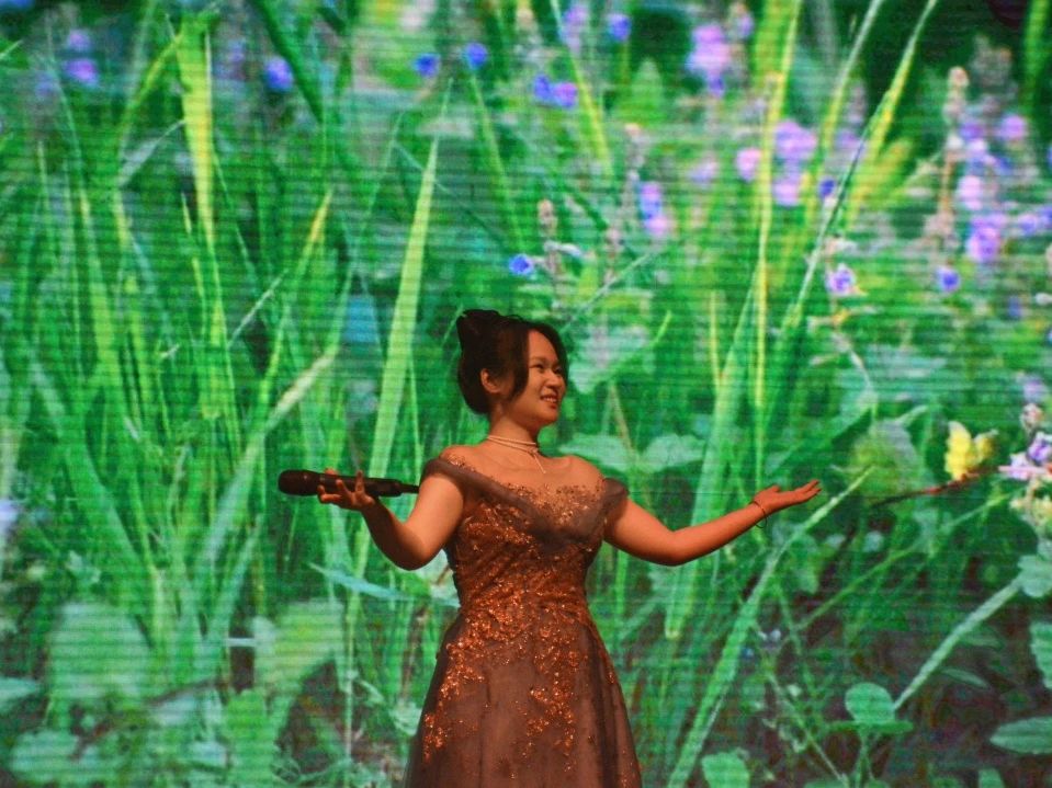 歌曲旋律如风,歌词如诗,演唱者用温柔的声线完美的诠释了两首歌曲,如涓涓流水,娓娓道来,沁人心脾,舞台布置清新富有氛围,为在场的观众带来了视听盛宴。