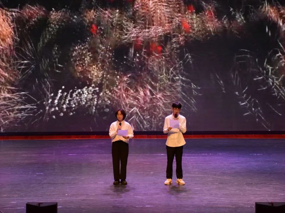朗诵者声音刚健有力,文字洒脱又富有力量,以文字代替内心,于高山之巅见大河奔涌,于群峰之上觉长风浩荡,毕业生充满朝气,表达了朗诵者鼓励毕业生不断探索新领域、奔赴祖国大地、建设美丽祖国的美好祝愿。