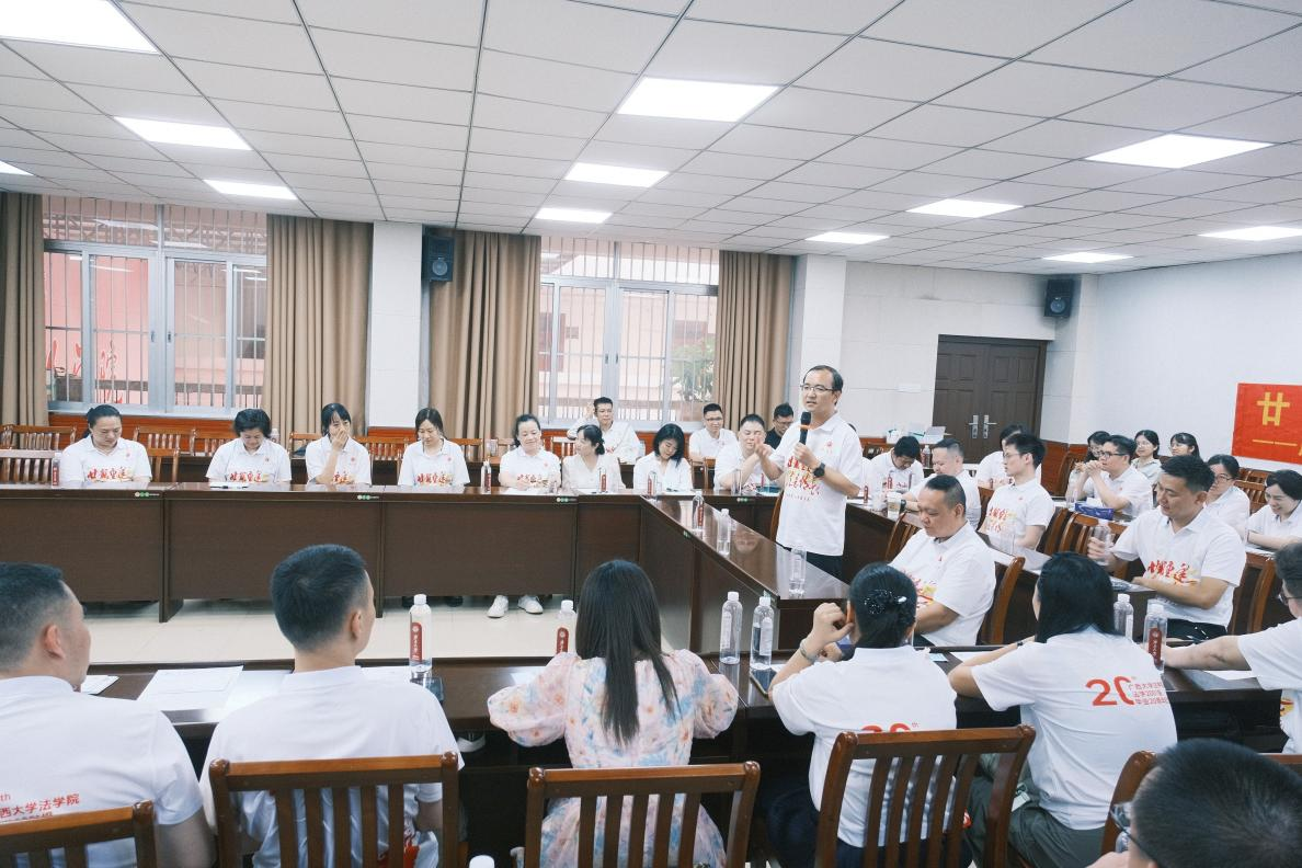 在自由交流环节,校友们畅所欲言。他们分享了毕业后在法律实务、学术研究、社会服务等不同领域的奋斗历程,回忆起老师们对自己的谆谆教诲、感慨同窗间互帮互助的情谊,言语间满是对母校培养的感恩之情。