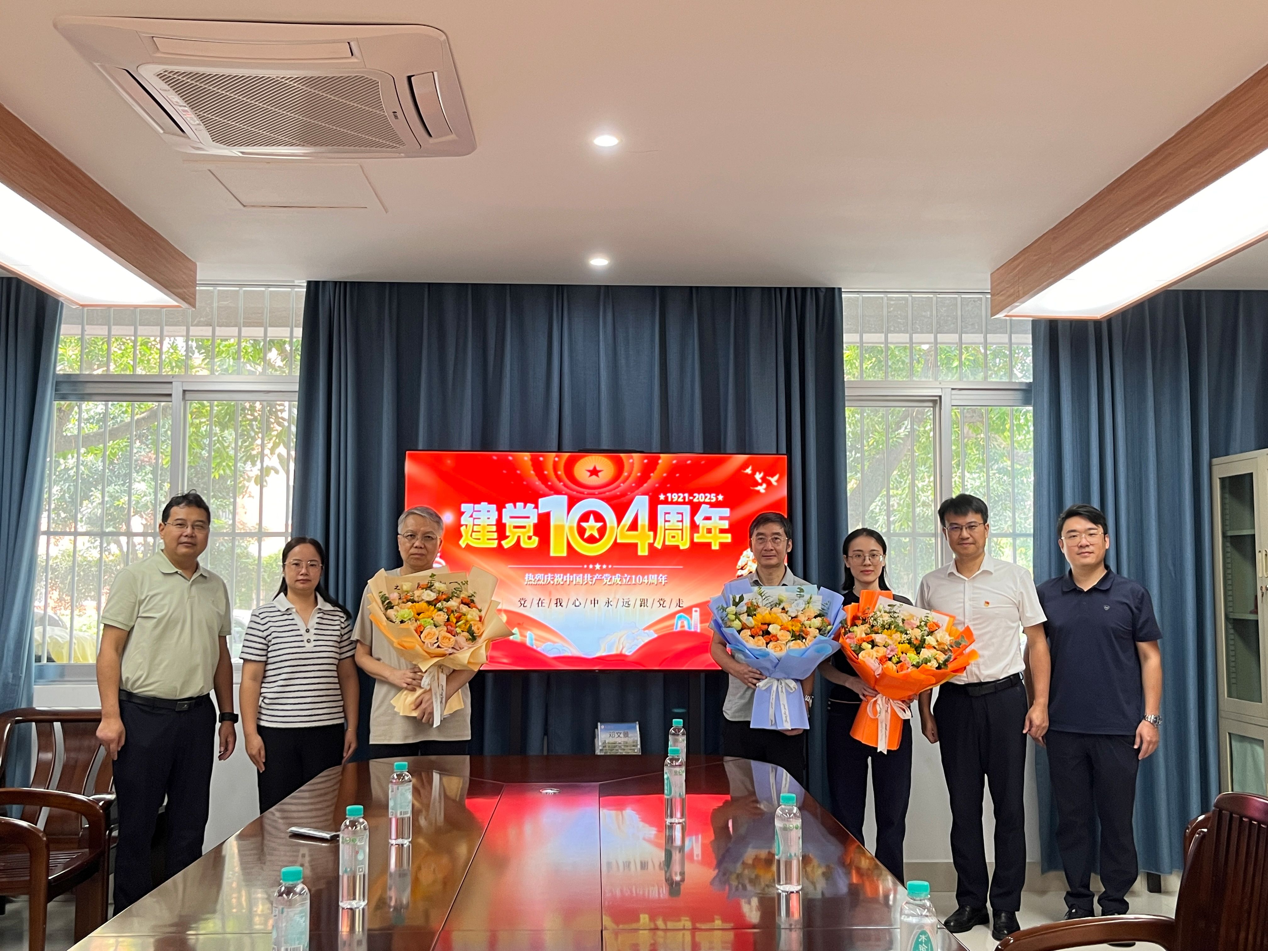 为庆祝中国共产党成立104周年,传承党的光荣传统和优良作风,进一步增强党组织的凝聚力和向心力,7月1日,伟德国际victor1946党委书记余云宇、院党委副书记韦兴剑、副院长熊超、院团委书记申孟鑫、专职组织员蔡舒姝等,走访慰问师生党员,向他们送去党组织的关怀与温暖。