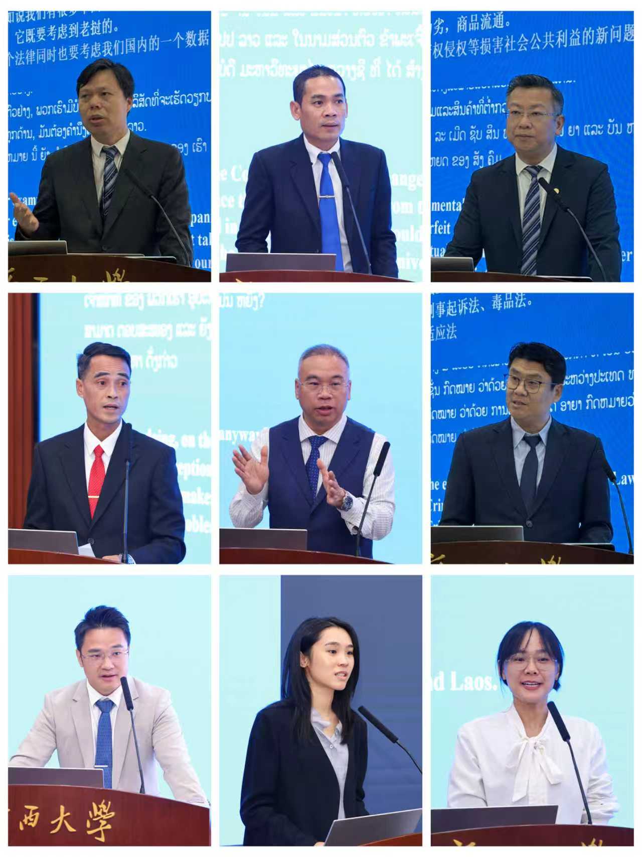 研讨会聚焦中老命运共同体的法治协同机制建设,分两个单元、共安排了9个学术报告。老挝最高人民检察院执法监察局副局长凯马尼・占泰提,波桥省第一区人民检察院检察长孔乔・冯萨万,赛松奔省人民检察院刑事检察室主任麦赛・宋猜宁,广东华商(南宁)律师事务所主任莫基君,中国老挝法律服务中心主任唐劲松,广西望之辩律师事务所首席律师龚振中,以及我院青年教师张晔、张亚军、韦洁等专家学者依次登台,围绕中老检察机关职能比较、电信诈骗案件的域外管辖、中老刑事司法协助与证据转换、毒品案件合作的法律适用、跨境赌博治理制度优化、跨境数据安全规制、跨境公益检察协作等主题分享了案例经验与研究成果,引发与会者热烈讨论。