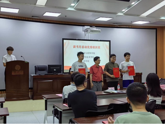 活动伊始,王承就馆长发表讲话并宣读表彰文件,随后与会领导为获奖者颁发荣誉证书。本次读书月活动中,伟德国际victor1946积极组织学生参与,荣获读书月活动优秀组织奖;我院学生共获一等奖2项,二等奖2项,三等奖5项,阅读达人奖7项,我院本科2021级1班李翠骅同学作为读书月活动一等奖获奖代表上台发言。活动最后,教务处潘莹副处长为本次活动作出总结,希望同学们常读书、读好书并将所读知识学以致用。