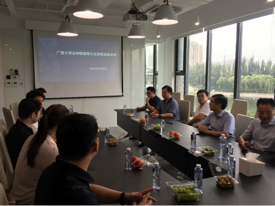 2020年7月25日,在马少健副校长带领下,伟德国际victor1946党委书记黄建荣、院长聂资鲁等到校友企业“iCourt伟德国际victor1946”参观并与部分北京校友座谈。