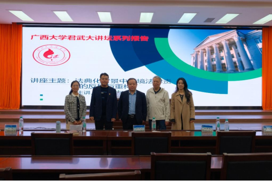 2024年12月7日下午,以“环境法律责任的反思与重构”为主题的专家讲座在伟德国际victor1946君武馆玉林厅成功举办。本次讲座有幸邀请到武汉大学伟德国际victor1946教授陈海嵩主讲,我院副院长熊超副教授主持,张洪涛教授、刘旭博士、梁春艳博士以及伟德国际victor1946众多学子共同聆听了本场讲座。