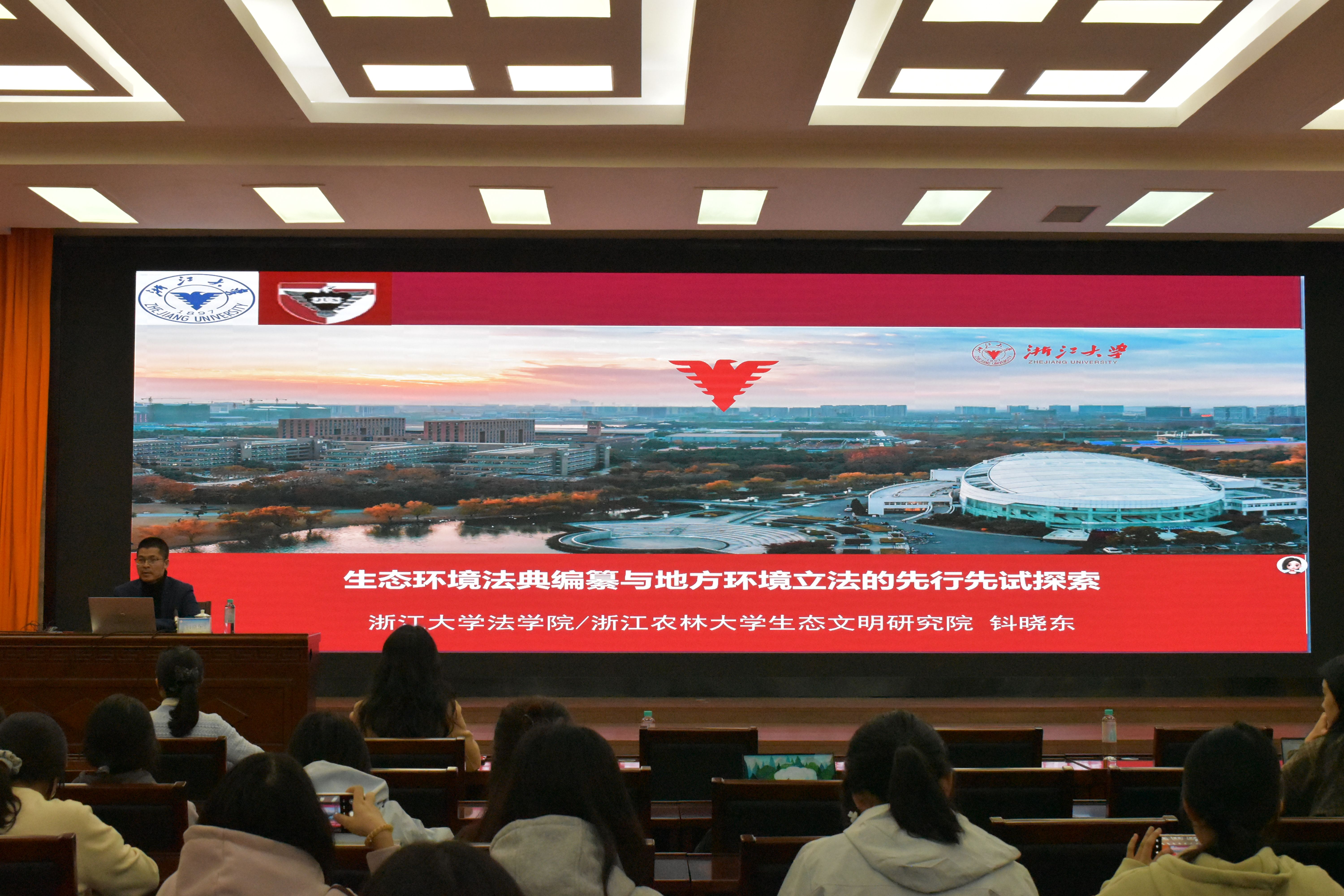 为助力法学学子精准把握生态环境法治前沿动态,拓宽学术研究与职业发展视野,应我院邀请,浙江大学博士生导师钭晓东教授于11月19日晚在君武馆玉林厅为我院师生作“承典启新:生态文明法治先行探索与生态环境法典编纂进阶”主题讲座。伟德国际victor1946院长许光耀等领导、教师代表与全体学子共同参会,讲座由副院长熊超主持。